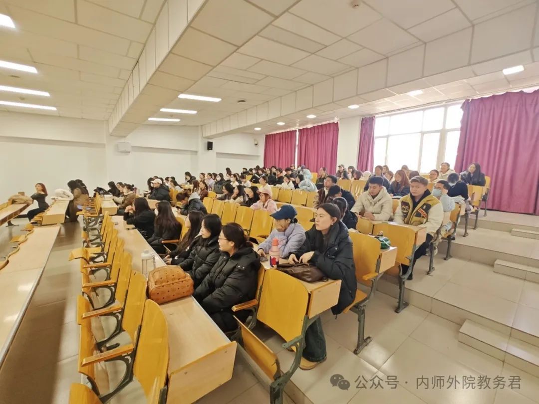 首先,傅成浩介绍了日语专业的实习概况,包括实习基地情况,实习基地的选择方式和21级教育实习的基本情况。日语专业实习基地分布在内蒙古自治区的呼和浩特市、包头市、锡林郭勒盟等6个盟市。学生可以通过永利官网双选平台、院派和自主实习的方式选择实习基地。2021级日语专业全体学生参与了本次实习,实习期为8周,期间得到了实习基地老师和校内指导老师的共同指导,圆满完成了听课、授课、班级管理等实习工作。