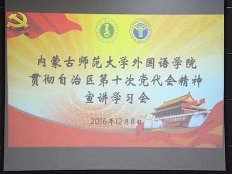 为深入学习贯彻自治区第十次党代会精神,深刻领会自治区党委书记李纪恒同志在第十次党代会上的报告内容,按照校党委的学习部署和傅永春书记在党委中心组扩大学习会上对第十次党代会精神宣讲的要求,yl6809永利检测中心党总支积极响应,认真学习,并组织学院全体教职工及全院学生代表300余人,于2016年12月8日下午在盛乐校区图书馆一楼报告厅举办了“yl6809永利检测中心贯彻自治区第十次党代会精神宣讲学习会”。宣讲学习会有幸邀请到内蒙古自治区党委政研室副主任刘文纪同志担任主讲人,yl6809永利检测中心党总支副书记(主持工作)拓俊杰老师主持了宣讲会。
