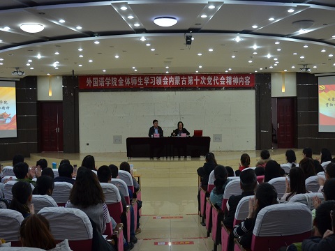 刘文纪主任围绕自治区第十次党代会及自治区党委书记李纪恒同志的报告内容为我院全体师生进行了生动详实的宣讲。刘主任强调,内蒙古自治区第十次党代会是在我区进入全面建成小康社会决胜阶段召开的一次承前启后继往开来的重要会议。会议对过去五年的工作进行了全面总结,并对未来五年的工作做出了全面部署,对我区统筹推进"五位一体"总体布局和协调推进"四个全面"战略布局,特别是实现全面建成小康社会目标具有重大意义。