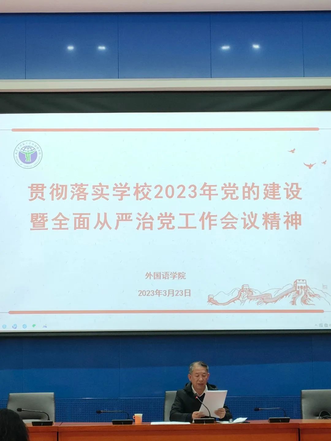 3月23日下午,yl6809永利检测中心在赛罕校区学术报告厅召开全体教职工大会,学习传达和贯彻落实学校2023年党的建设暨全面从严治党工作会议精神。学院全体教职工参加本次会议,会议由学院党委书记李文胜主持。
