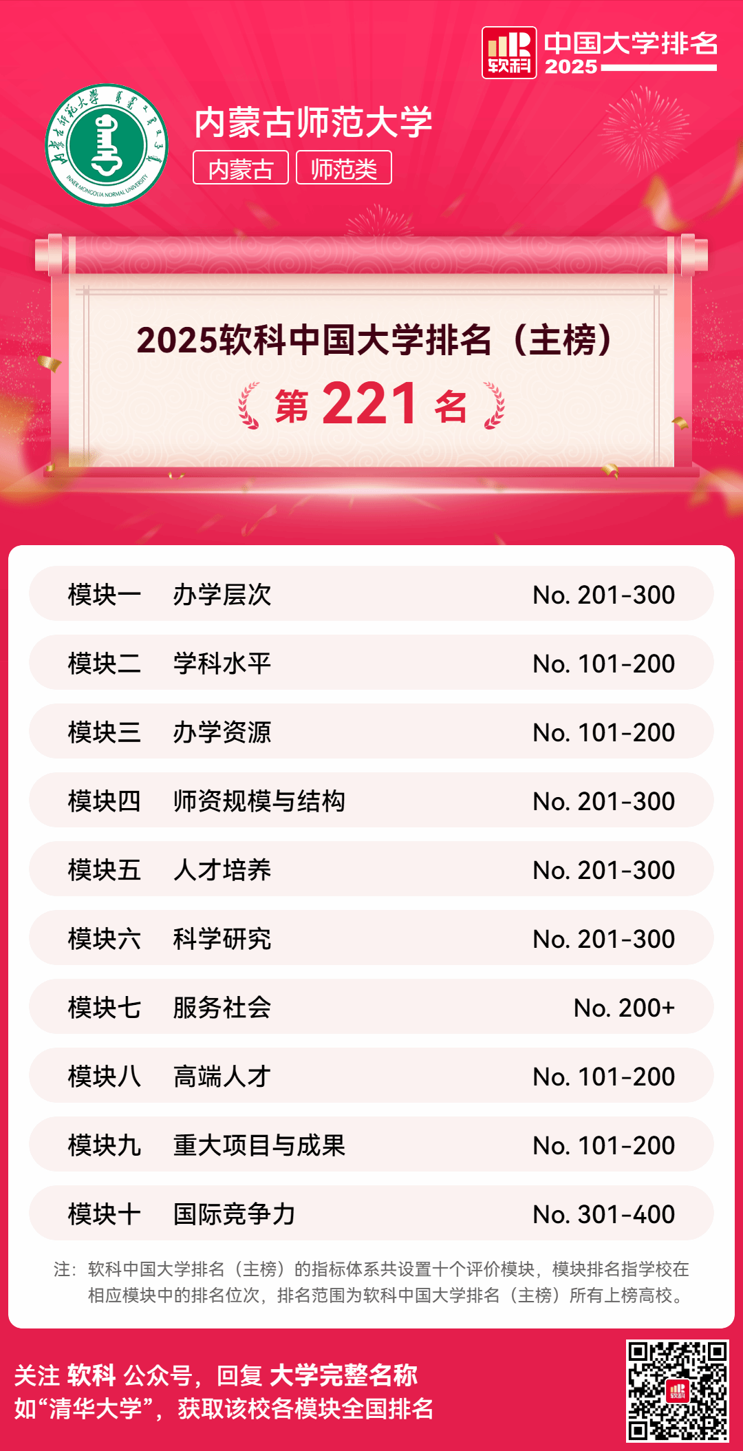 本网讯 4月15日,高等教育专业评价机构软科正式发布“2025软科中国大学排名”,我校综合排名居于全国第221位,较上年提升17位,较2019年提升248位,呈现连续上升趋势,展现出良好的发展态势。