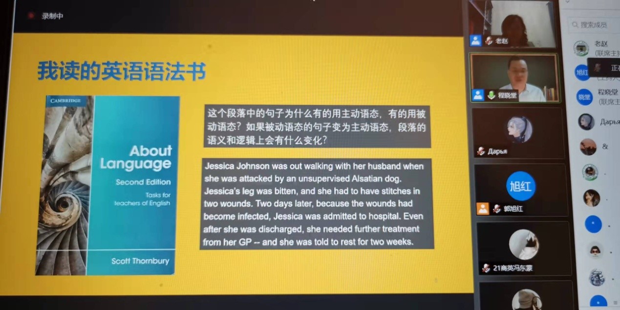 2021年11月18日,做客我院开展的“喜迎校庆·名家零距离”系列学术活动的名家是北京师范大学外国语言文学学院程晓堂教授。程晓堂教授应邀为我院师生带来了题为“重新认识语法及语法学习的意义”的专场讲座。本次讲座以线上方式进行,yl6809永利检测中心院长赵晓军教授主持了本次讲座。