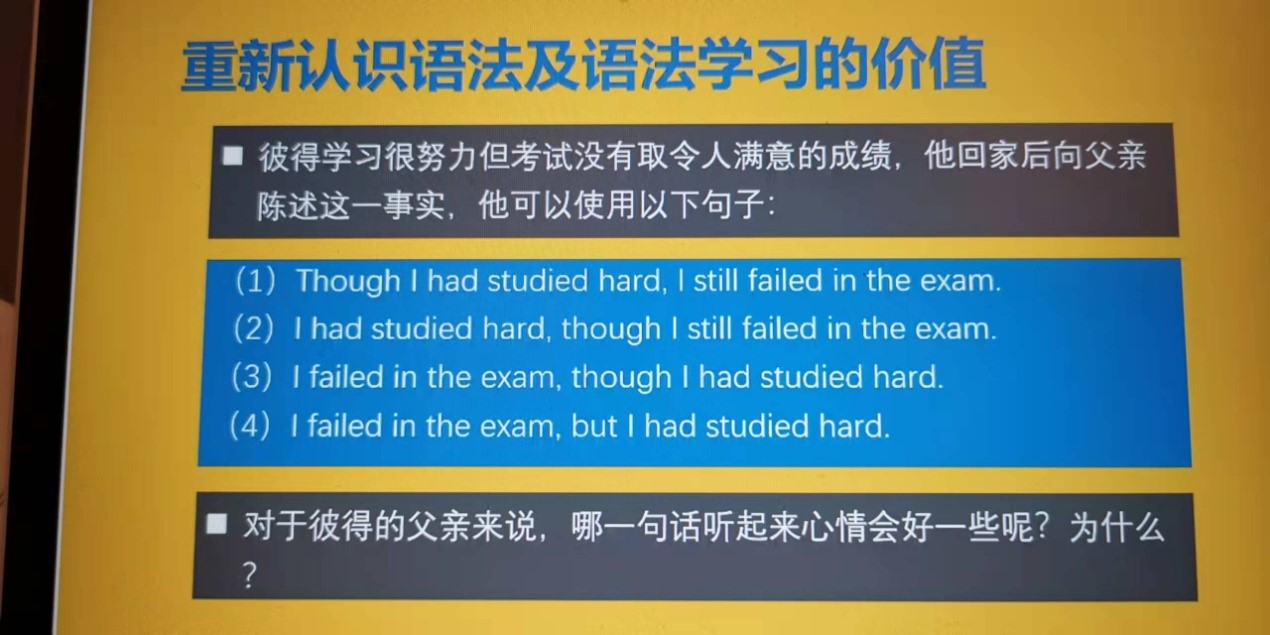 本次讲座不仅为我院学子提供了语法学习指南,还有利于树立我院学生积极向学、踏实学习语言的良好态度,对培育我院优良学风、加强学风建设具有极其重要的意义。同时,本次讲座帮助英语技能类课程的任课教师教师提升了对基础课程教学方法的认识,对于提高此类课程的教学质量具有重要的指导作用。