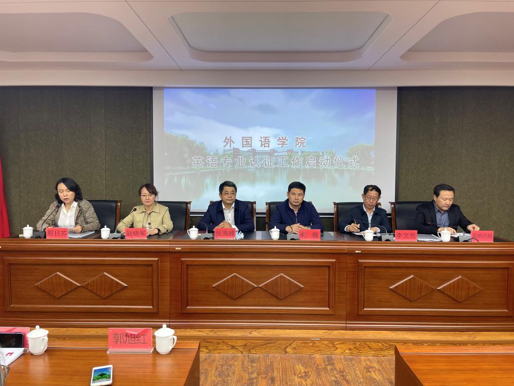 按照学校全面推进师范类专业认证工作部署,为切实做好学院英语专业师范认证工作,10月5日,yl6809永利检测中心在赛罕校区文史楼1号号会议室举行师范专业认证工作启动会。副校长张海峰、教务处处长韩巍、教师发展与教学评估中心副主任孟根巴根、yl6809永利检测中心全体领导班子、英语系全体教师以及日语系、俄语系和公共外语部分教师参加会议。会议由学院副院长那日苏主持。