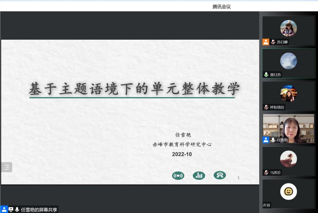 2022年10月20日下午,我院邀请赤峰市教育教学研究中心英语教研员任雪艳高级教师为我院师范生进行了题为《基于主题语境下的单元整体教学》的线上讲座,副院长那日苏主持讲座,英语系教师教育团队全体教师,2019级、2020级全体本科生以及部分研究生参加。讲座从英语学科核心素养展开,聚焦为何进行“单元整体教学设计”,达到目标意识、单元意识、学生意识的建构。任老师首先介绍了 “大观念”的概念和特点,探讨了“大观念”的学习迁移价值和四个特征:永恒性、中心性、抽象性、网状性,强调“大观念” 是落实学科核心素养的重要抓手。其次,结合义务教育英语课程标准(2022版),任老师细致地分析了学科核心素养和课程目标的新要求,强调单元整体教学内涵及其意义,凸显学习活动观的层次。最后,任老师通过具体案例,结合新人教版和外研版教材进一步明晰了在文本解读后,如何进行大观念开展单元整体教学设计,做到单元内容结构化。讲座后,任老师和同学们进行了线上互动交流。本场讲座内容翔实,实用性、可操性强,让师范生对英语教学改革中的教学设计理念有了更加深刻的认识。