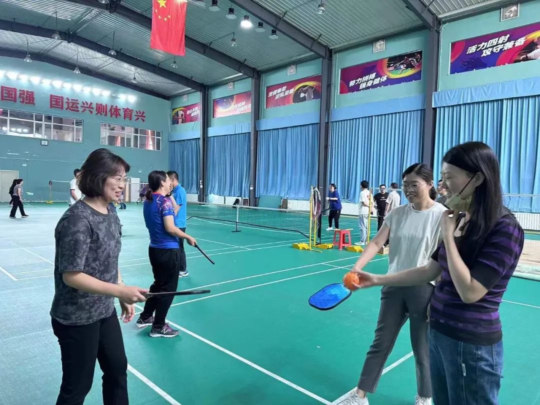 匹克球赛场上,教师们化身为学习者。在专业教练的指导之下,认真的学习比赛规则和动作要领。通过默契的合作,展示了团队协作的精神。每一次摆动的球拍,展现了教师们兼具力量与柔韧的运动才能。