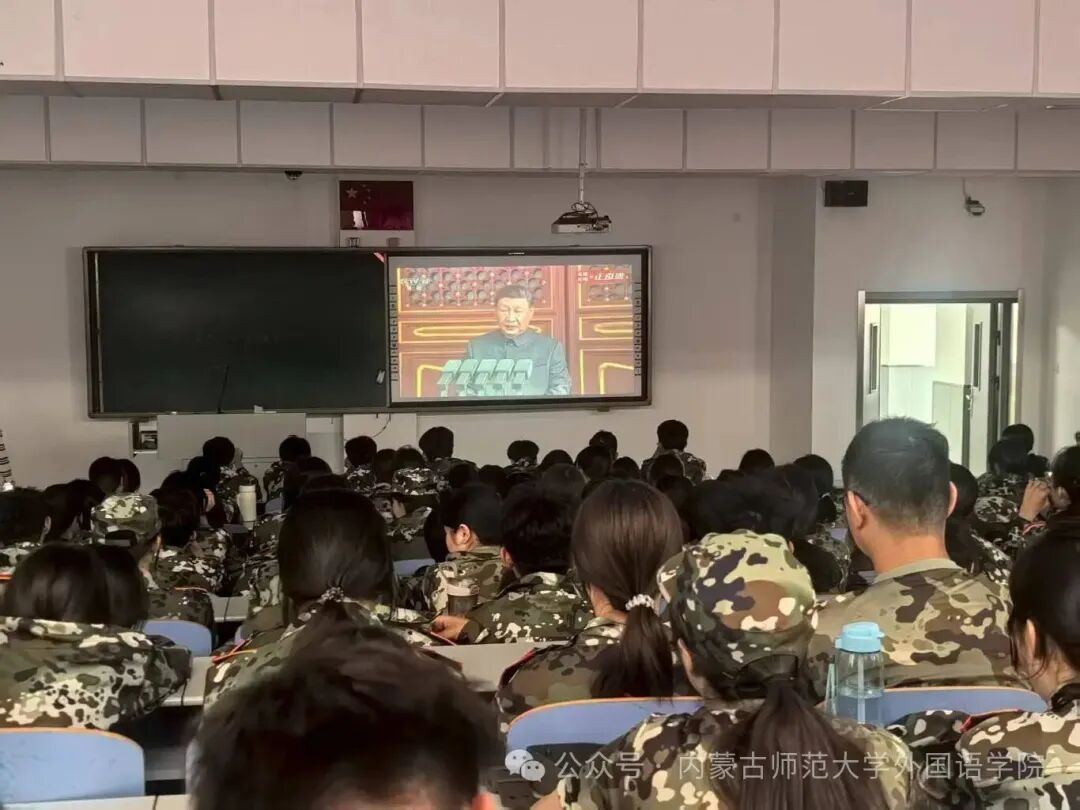 全体新生观看九三阅兵直播