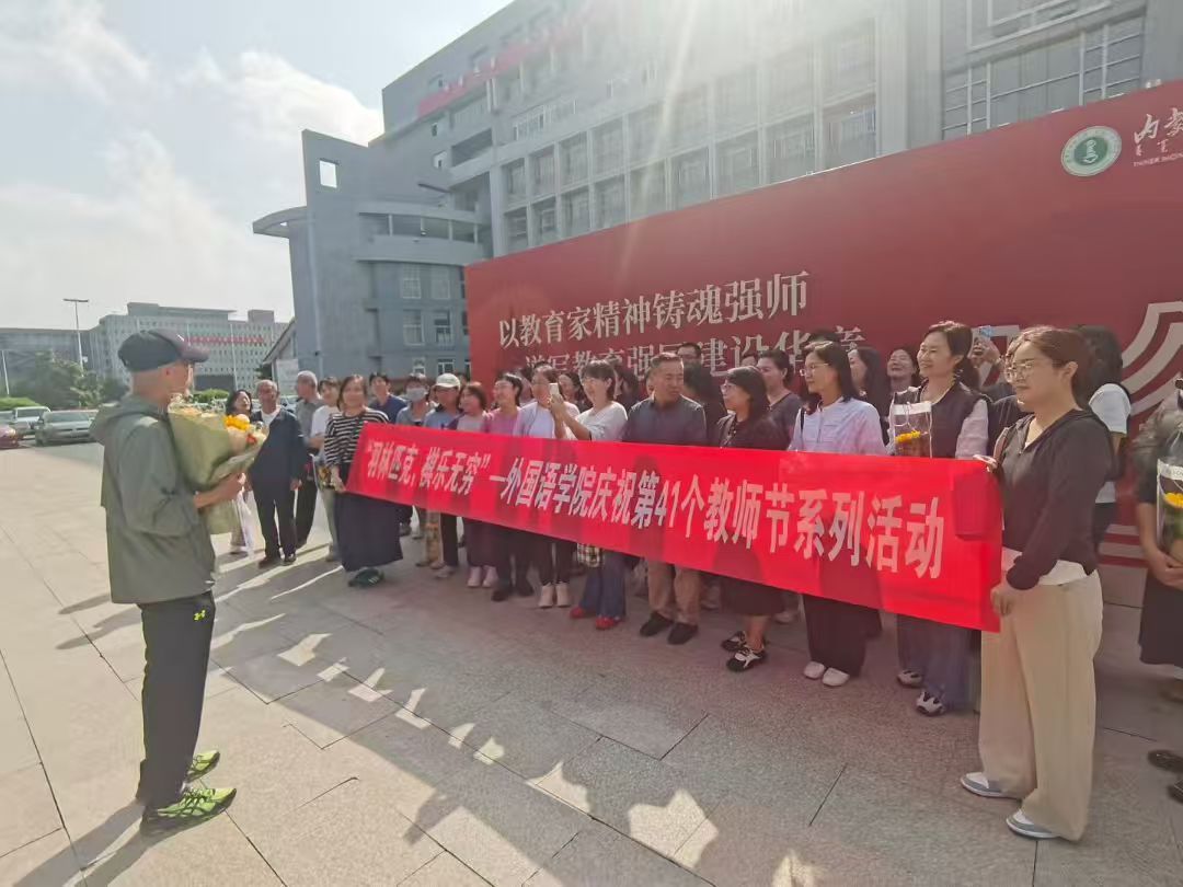 9月10日,清晨的行知楼洋溢着温馨的氛围。学院领导班子早早守候在门口,为每一位辛勤的教师献上精心准备的鲜花与节日的祝福。真诚问候不绝于耳,朵朵鲜花映衬着老师们喜悦的笑容,现场温暖动人。
