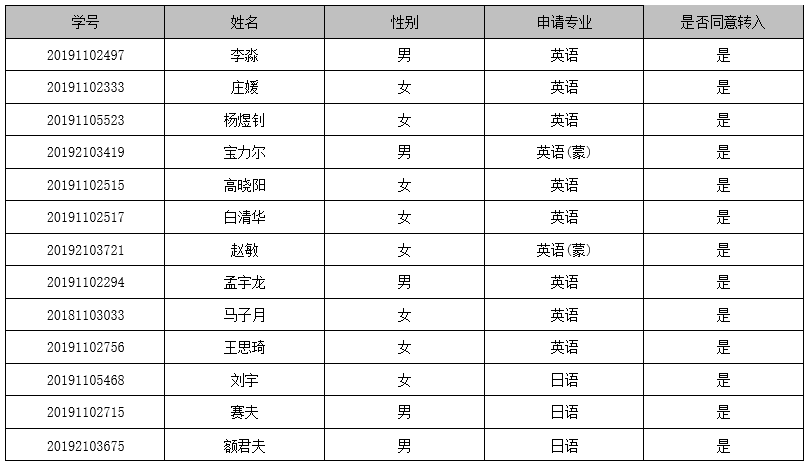 根据永利官网《关于开展2020年本专科生转专业工作的通知》(内师教发[2020]34号)、《yl6809永利检测中心本科学生转专业管理办法》有关规定,经yl6809永利检测中心转专业工作小组考核,拟接受如下同学提出的转专业申请,现予以公示。公示期为3个工作日,公示期内,如对名单有异议,可直接向yl6809永利检测中心反映。