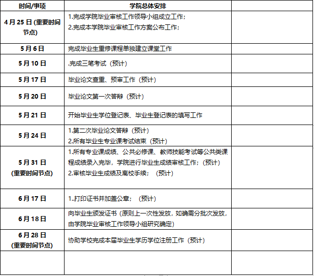 注:以上工作具体完成时间及先后顺序会随学校、学院具体情况做适当调整,以最终完成时间为准。