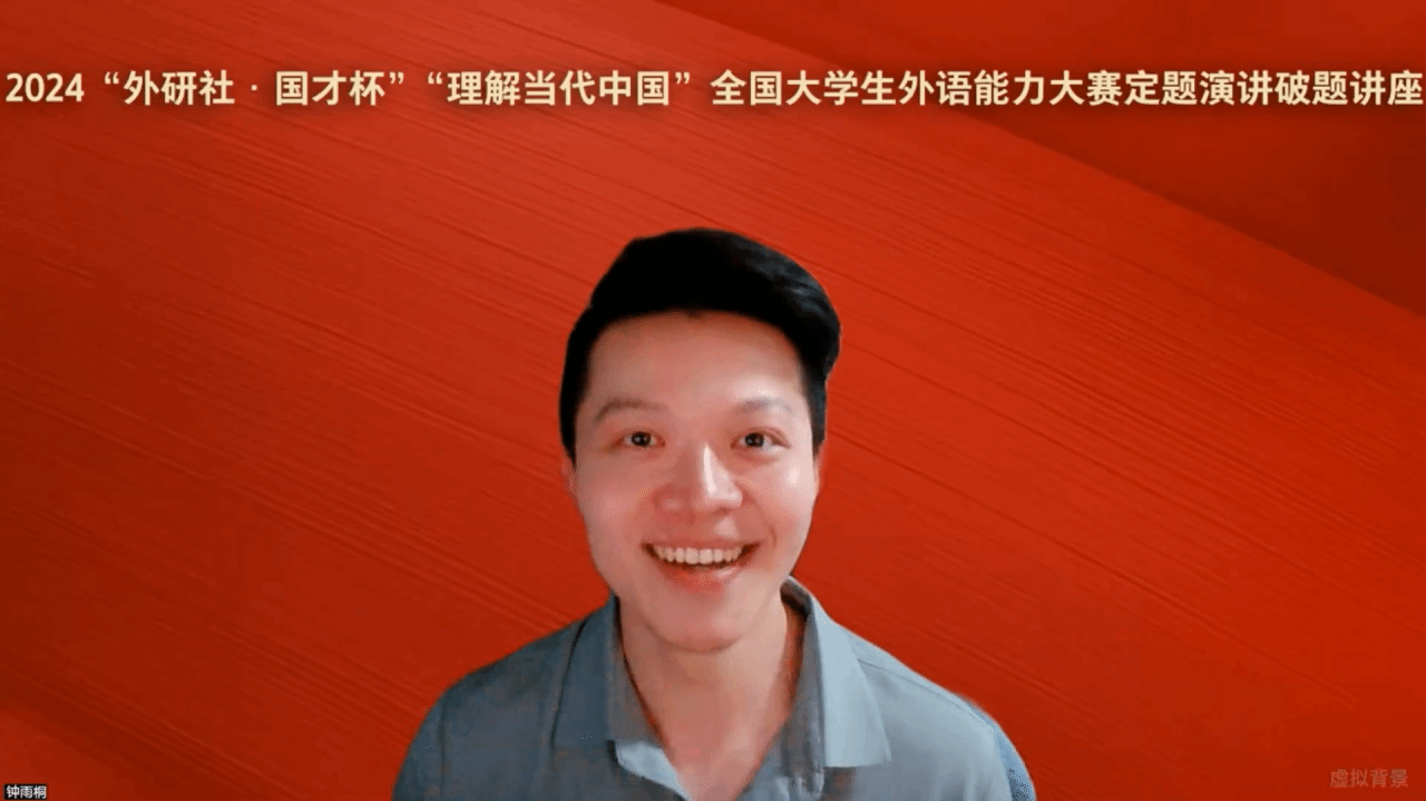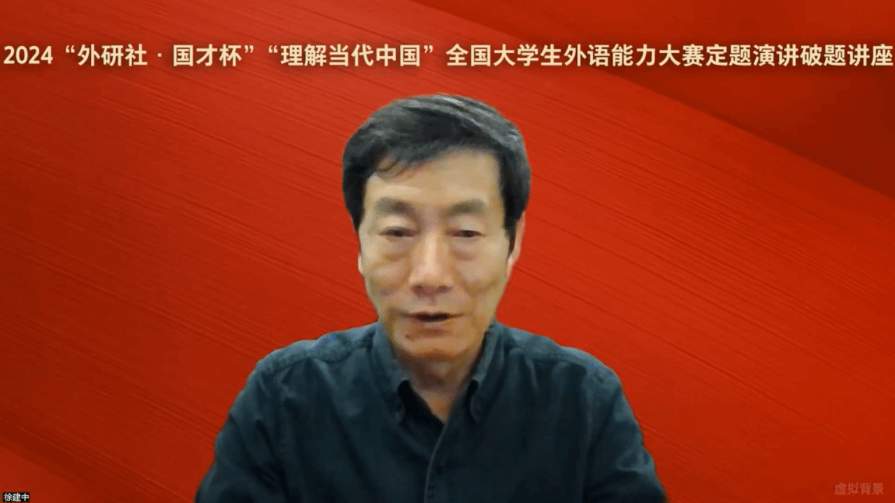 4月25日晚,2024“外研社·国才杯”“理解当代中国”全国大学生外语能力大赛定题演讲破题讲座第一期在线上举办。大赛组委会邀请多领域专家围绕定题演讲赛题The Chinese Dragon Is Good展开多角度解读,本期三位主讲嘉宾为:大赛学术专家、外研社原总编辑徐建中编审,北京外国语大学孔子学院工作处处长、大赛国赛评委金利民教授,2015演讲大赛全国亚军、多次担任国赛主持人及挑战评委的钟雨桐。