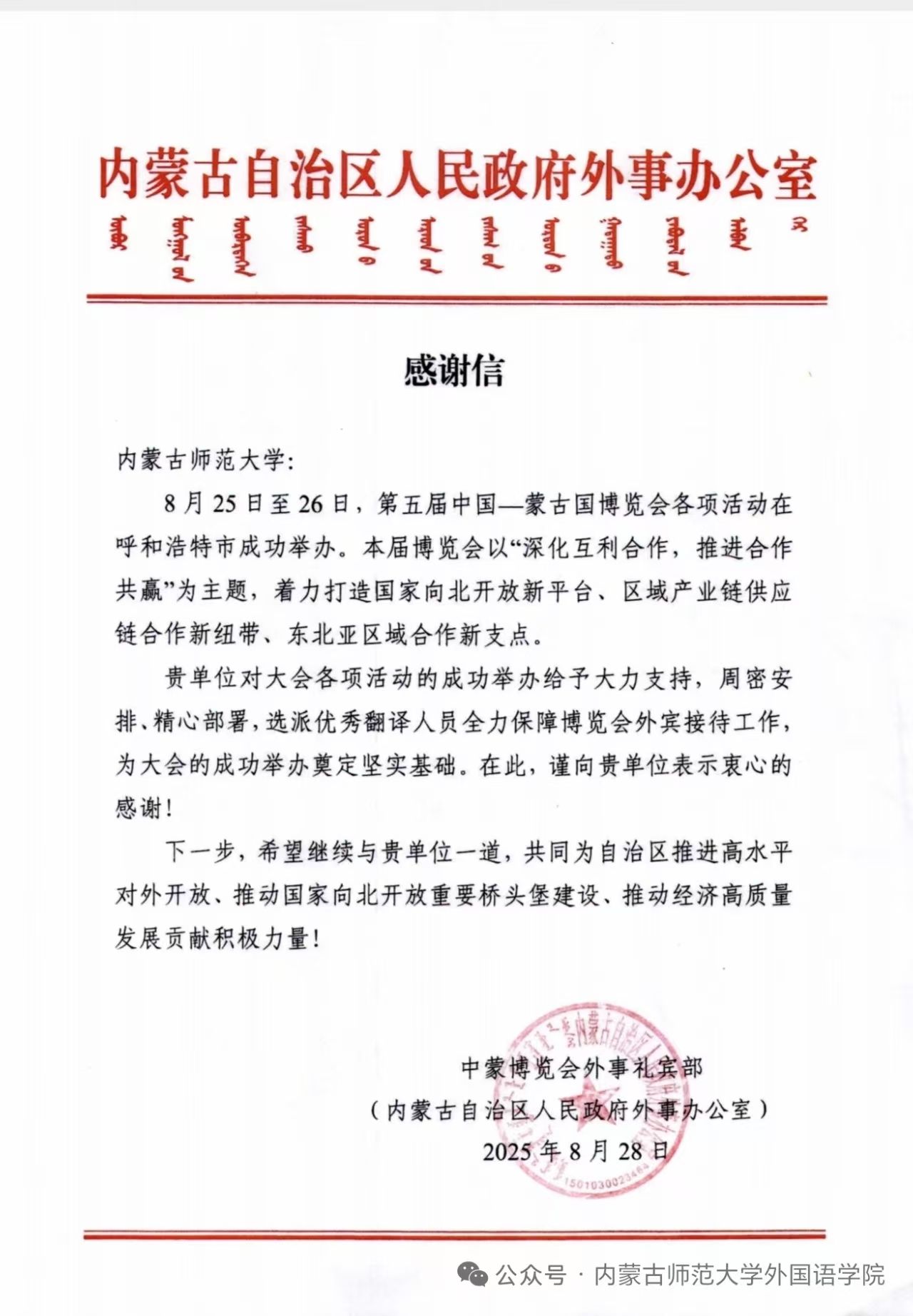 近期,我院师生凭借专业学识与责任担当,圆满完成内蒙古自治区多项大型国际活动的志愿服务与语言支持工作,尽显新时代高校师生风采,为中外友好交流贡献力量。