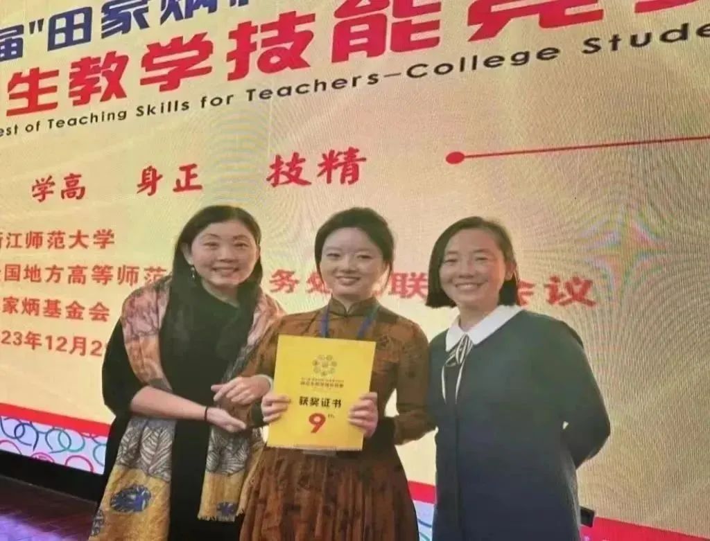 2023年12月29日至31日“田家炳杯”第九届全国师范院校师范生教学技能竞赛决赛在浙江师范大学举行,我院英语专业2020级薛晓静同学成功入围决赛,斩获英语组二等奖的佳绩。
