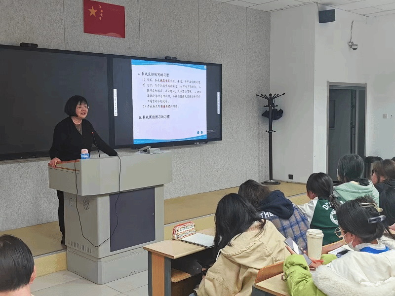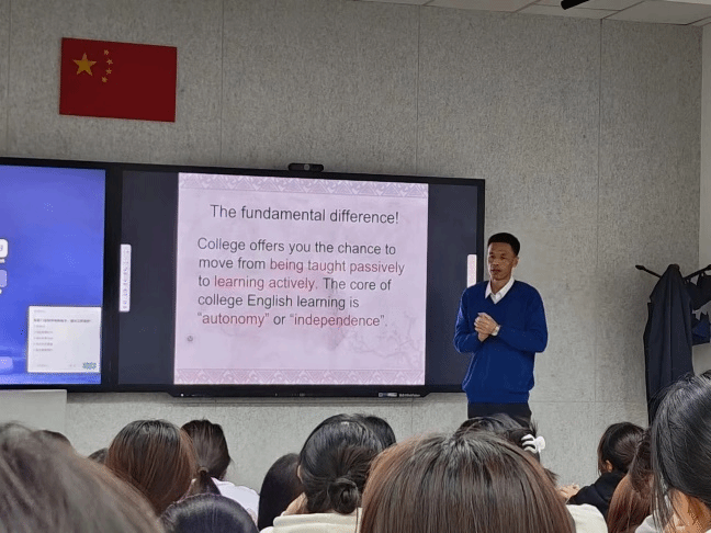 首场讲座由乌兰老师主讲,题目为“综合英语学习方式方法概述”。乌兰老师对综合英语的课程目标与内容进行了详细的讲解,强调了相关课程的学习重点和难点,解读了何为自主学习,为大一新生指明了正确的学习方向。同时,乌兰老师还分享了几种英语学习方法,强调了听说读写的重要性。这些建议有助于英语学习效率的提高和学习能力的培养同学们都表示受益匪浅。
