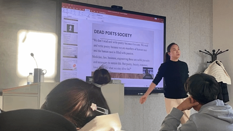 第三场讲座由王欣欣老师主讲,题目为“走近英美文学课程群”。在讲座中,王欣欣老师引用萨沃假说,深入阐释了语言和思维之间的辩证关系,为大一新生对英美文化的理解与感受奠定了基础。同时,王欣欣老师还为同学们阐释了教育教学的丰富含义,为同学们传递了英美文学的魅力与力量。通过学习英美文学,学生可体会不同语言和不同文化间的差异与共通,加深学生的跨文化理解。