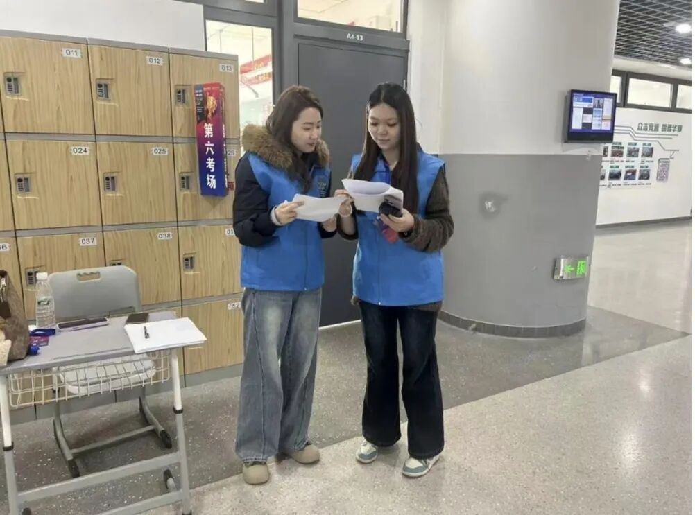 赛事当天,我院45名师生志愿者分工协作、全力服务。在教师现场调度与指导下,学生志愿者值守签到处、候场区等各岗位,开展签到分流、考场指引、物料支持、答疑接待等工作,高效保障赛事各环节有序推进,让参赛选手安心参赛。