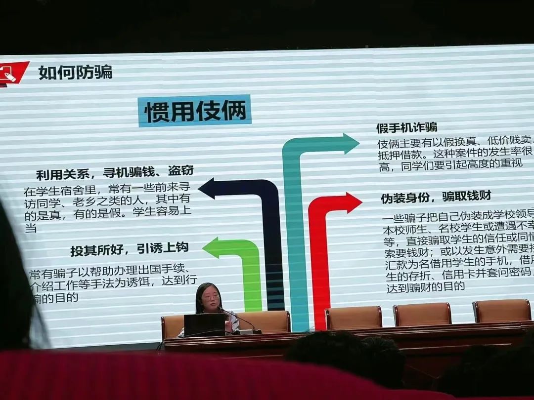 我院辅导员常慧老师围绕宿舍用电安全、校园网络电信诈骗、人身财产安全、食品安全、交通安全等内容进行了全方位的安全教育。呼吁大家在日常学习生活中提高安全意识。