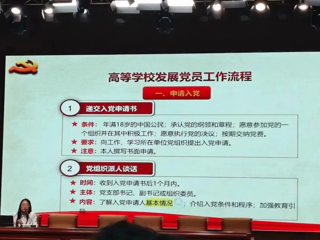 我院辅导员吕志云老师详细介绍了永利官网党员发展流程,希望同学们坚定理想信念,积极向党组织靠拢
