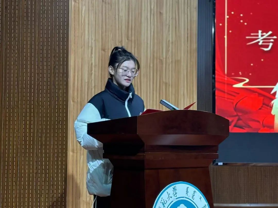 23级英语一班王欣宇同学代表全体同学宣读誓言,激发全体的斗志和信心,提醒参与者即将到来的考试的重要性,增强备战意识。誓言中,承诺将秉持诚信原则,拒绝任何形式的作弊行为,以真实的成绩迎接每一次挑战。