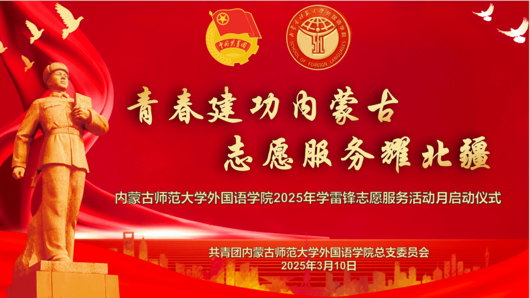 2025年3月10日,我院在盛乐校区学生事务中心一楼报告厅开展2025年学雷锋志愿服务活动月启动仪式,学院党委副书记、副院长李艳茹,学就办主任通拉嘎,学就办副主任常慧,辅导员白俊萍参加启动仪式,仪式由团总支负责人徐戌主持。