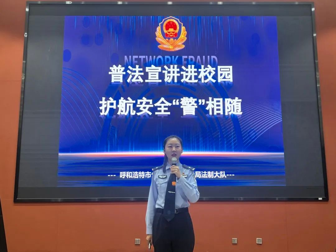为切实提升大学生法治素养,筑牢违法犯罪 “防火墙”,我院于 2025 年 5 月 29 日在美术学院报告厅举办 “法治护航青春” 普法宣讲进校园主题活动。活动特邀呼和浩特市公安局开发区分局法制大队王硕警官担任主讲,2024 级 名学生现场聆听了这场法治课堂。