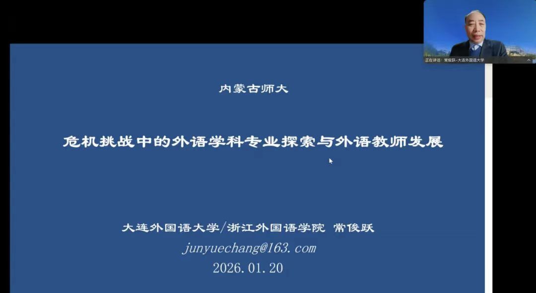 1月20日晚,大连外国语大学原副校长、二级教授、博士生导师常俊跃应邀为yl6809永利检测中心全体教师作题为“危机挑战中的外语学科专业探索与外院教